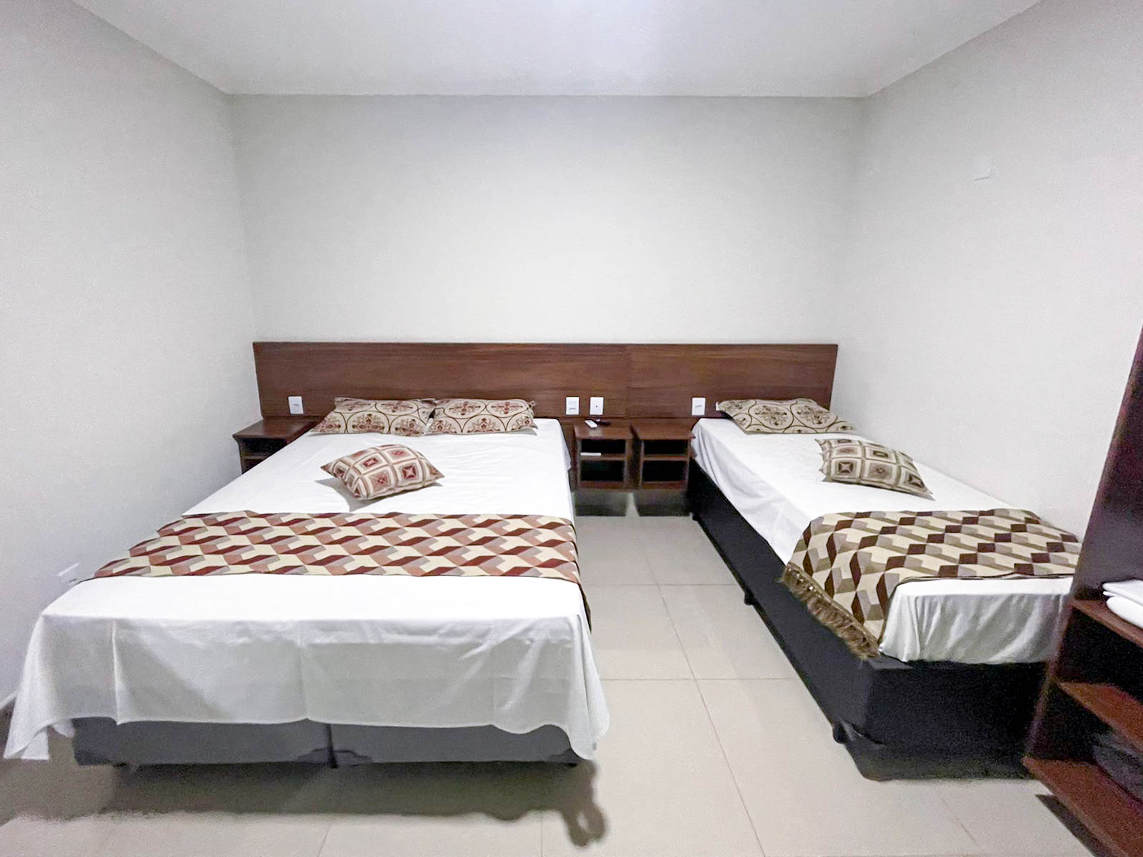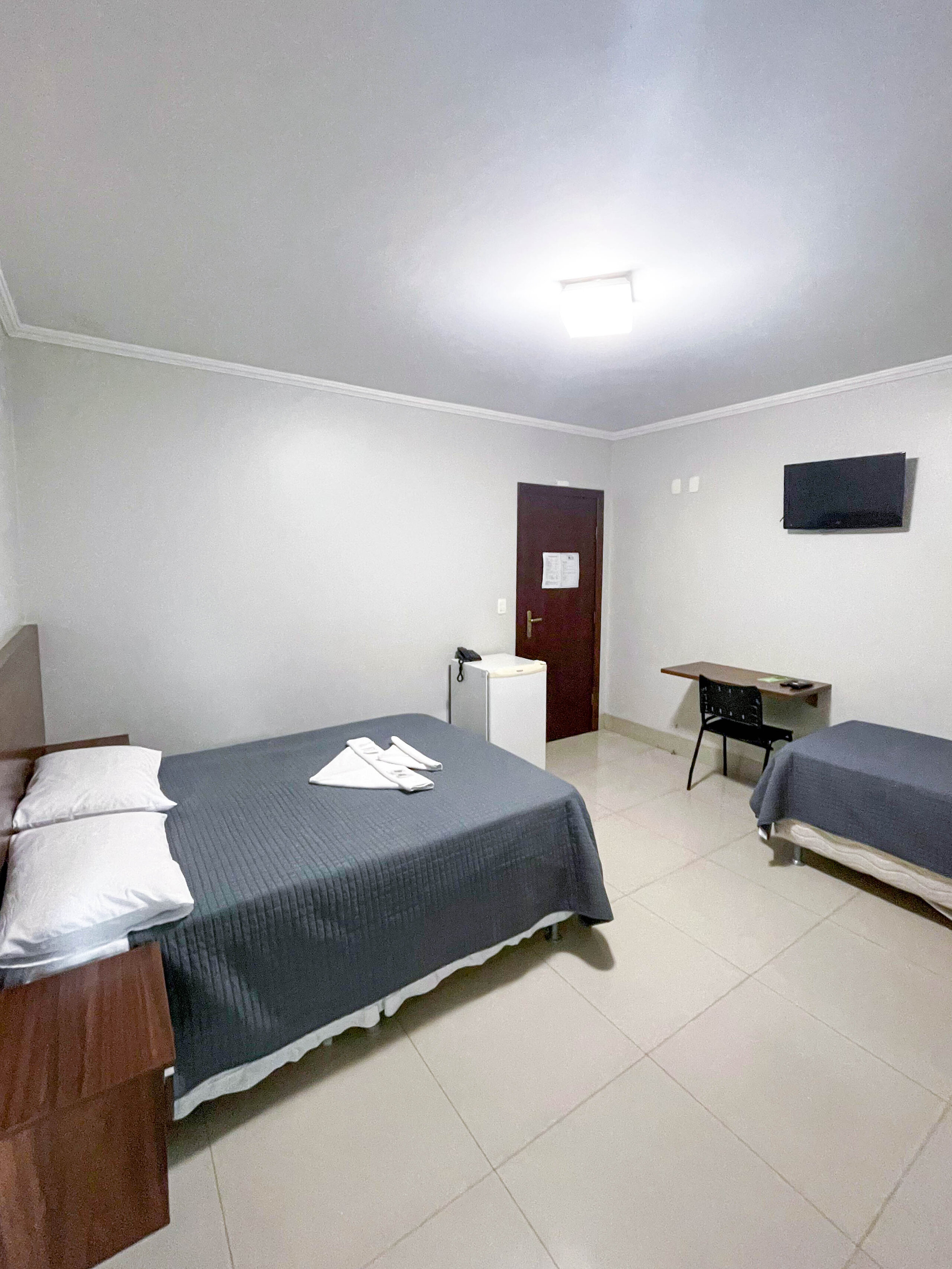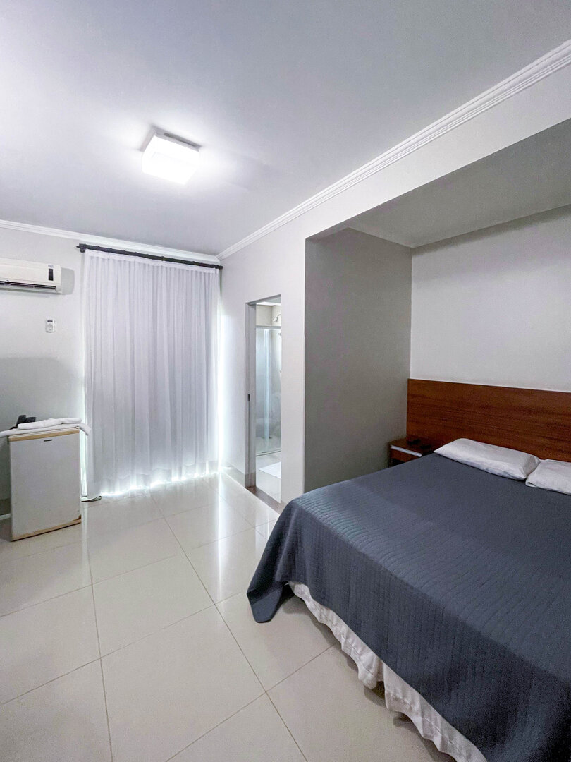 Espaçoso e acolhedor, o Standard Quádruplo acomoda até quatro pessoas com uma cama de casal e duas camas de solteiro. Conta com televisão, ar-condicionado, telefone, mesa de trabalho e Wi-Fi gratuito. Comodidades como sabonete, shampoo e toalhas também estão disponíveis.